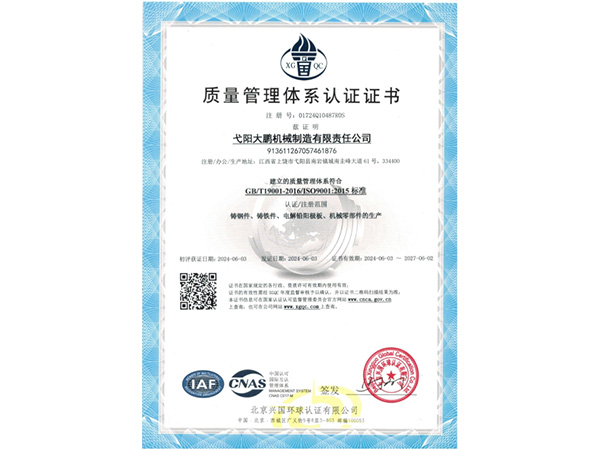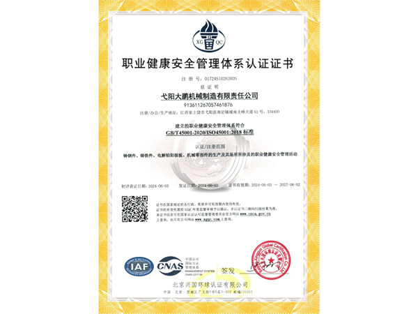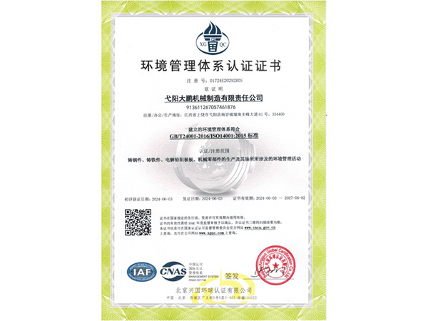 公司順利通過質(zhì)量管理體系認(rèn)證、環(huán)境體系認(rèn)證、職業(yè)健康安全管理體系認(rèn)證、環(huán)評。2015年5月獲國家工信委頒發(fā)的《鑄造企業(yè)準(zhǔn)入條件》;2019年做了安全現(xiàn)狀評價;2020年取得了排污許可證。